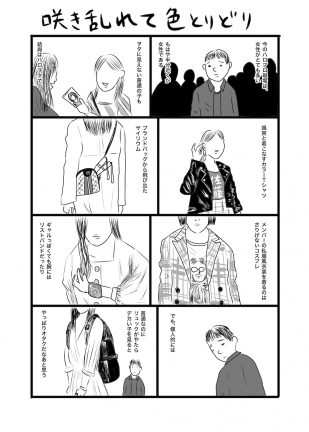MANGAMANGA劔樹人『ハロヲタ千夜一夜』vol.11 〜咲き乱れて色とりどり〜長いハロプロファン生活の中で出会った愉快で個性的なハロヲタたちの姿をユーモラスに描く、劔樹人さんによる連載漫画『ハロヲタ千夜一夜』。第11話は、最近のハロプロ現場で気になる女性のファッションについて。2019.4.19劔樹人