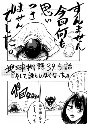 2019.11.28MANGAシノダ「地球物語 39.5話 – そして誰もいなくなった – 」 ヒトリエ シノダ 地球物語 シノダ TwitterSHARE FacebookSHARE Line送る HatenaBOOKMARK シノダ「地球物語 39話 – Secret Meeting – 」 前の記事 シノダ「地球物語 40話 – メチルオレンジ – 」 次の記事 SHARE TwitterSHARE FacebookSHARE Line送る HatenaBOOKMARK Written by シノダヒトリエというバンドでギターを弾いています twitter ヒトリエ Official Website● 著者の最近の記事 MANGAMANGAシノダ「地球物語 XX話 – 悲しきディレイちゃん – 」壮大なスケールで繰り広げられるヒトリエのシノダさんによる連載漫画「地球物語」XX話。とある女の子の、夢のはなし。2020.3.28シノダ MANGAMANGAシノダ「地球物語 42話 – Beautiful – 」壮大なスケールで繰り広げられるヒトリエのシノダさんによる連載漫画「地球物語」42話。戦いの終盤、彼女が武器を手に入れ参戦……?!2020.2.28シノダ MANGAMANGAシノダ「地球物語 41話 – 君からの合図 – 」壮大なスケールで繰り広げられるヒトリエのシノダさんによる連載漫画「地球物語」41話。戦いもついに終盤へ……?!2020.1.28シノダ MANGAMANGAシノダ「地球物語 40話 – メチルオレンジ – 」壮大なスケールで繰り広げられるヒトリエのシノダさんによる連載漫画「地球物語」40話。空間を斬る、という恐ろしい技が・・!2019.12.28シノダ MANGAMANGAシノダ「地球物語 39話 – Secret Meeting – 」壮大なスケールでお届けするヒトリエのシノダさんによる連載漫画「地球物語」39話。戦いの最中、明かされる過去のストーリー…。2019.10.28シノダ 最初の記事 この著者の記事一覧 Follow @meetia_music ミーティアの最新情報をお届けします! ミーティア公式ラインアカウントミーティアの最新情報をお届けします! LINEで友達になる #LINE MUSIC#あいみょん#テラスハウス#漫画deトランス#ナルバリッチ#BiSH#雨のパレード#フワちゃん#英会話#Youtuber#大橋裕之#ファーストサマーウイカ#ハロヲタ千夜一夜#アリスムカイデ#地球物語#King Gnu RANKING人気の記事 WEEKLY MONTHLY TOTAL WEEKLYデータがありませんMONTHLYデータがありませんTOTALデータがありません